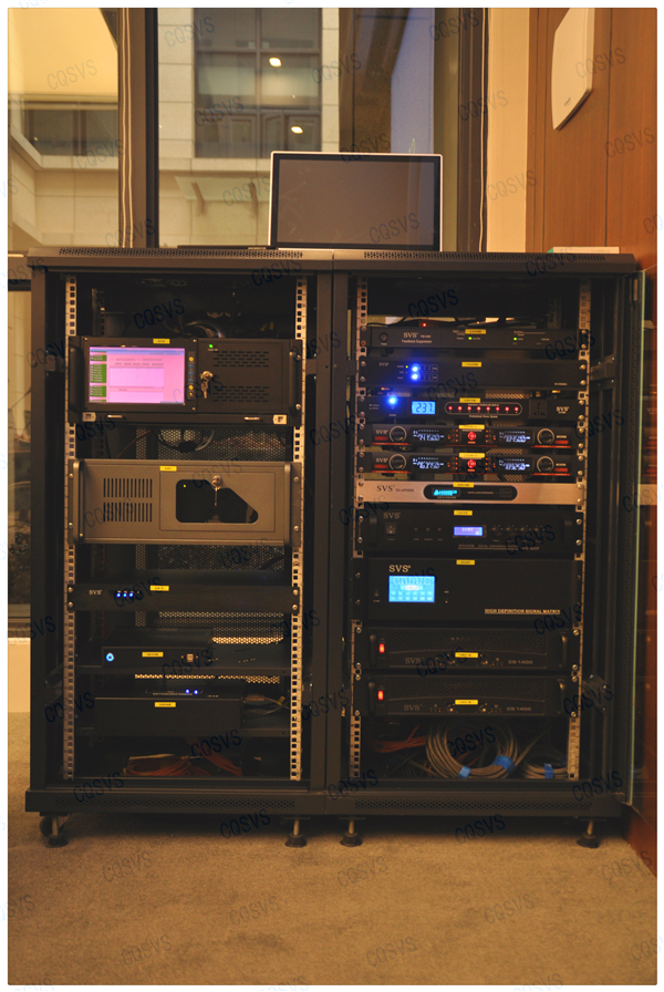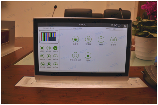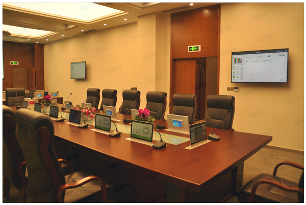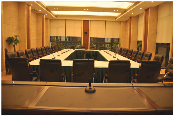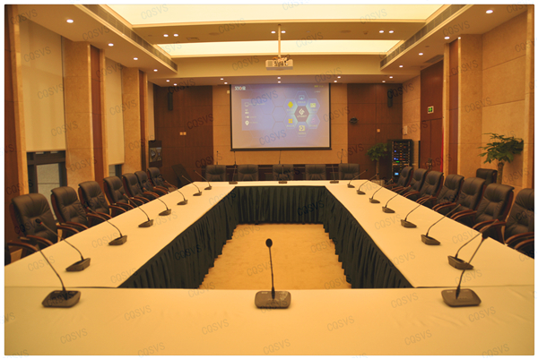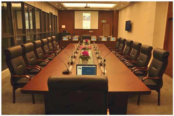 此次我司很榮幸的參與了重慶某區管委會的無紙化會議建設。在方案設計過程中,采用手拉手會議系統和擴聲系統相結合實現會議智能化,同時考慮到會議廳的多功能作用,在SVS智能化會議系統的基礎上加入了投影設備和55寸液晶顯示設備。另外,采用中央控制系統對聲、光、電進行控制,打造出完美的智能化會議系統。