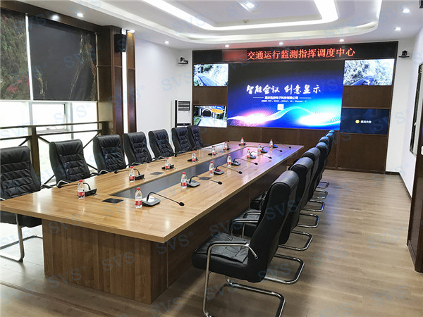 此次,重慶迅控電子科技有限公司助力某交通運行監測指揮調度中心打造數字會議室,會場選用臺面可移動式時鐘會議系統發言單元SV-MT318A/B,單元具有新型的OLED顯示大屏,程序化顯示時鐘、發言計時、倒計時等內容,讓會議更加高效、高質量完成。單元配置高檔進口咪芯,配合數字處理電路,展現高保真、高靈敏度、遠距離發言效果。咪桿采用螺旋式鍍金接口與底座無縫結合,確保長期耐用無雜音。另外單元還具有自動攝像跟蹤、多模式控制、自動關機等功能。組建系統簡單,使用方便,功能強大,效果一流,適用于高要求、固定多位置需要發言的會議場所。再搭配線性陣列音箱D2021,使得會場聲音更加清晰,有效聲場范圍更廣,也避免了聲波能量抵消,自然達到高保真音質和高還原度的效果。