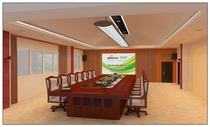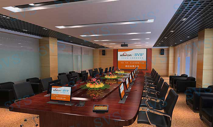 系統(tǒng)闡述: 顯示部分: 會議顯示使用120寸電動幕布,方便隱藏不影響整體美觀度,一鍵聯(lián)動功能讓會議更智能化。以及每一位與會人員配置19寸多媒體液晶顯示器,更加方便相互間信息共享交流,隱藏式安裝,桌面更加整潔、大方。 擴聲部分: 采用4只12寸全頻音箱作為主擴聲,完美的聲音表現(xiàn)技術(shù),獨有中頻人聲還原技術(shù),可避免聽覺上疲勞。匹配4通道功率放大技術(shù),讓聲音表現(xiàn)更加靈活,先進的降噪處理技術(shù)可有效避免各類環(huán)境所產(chǎn)生的聲音干擾,具備雙保險可有效保護設(shè)備使用壽命。 會議部分: 會議采用純數(shù)字保密通訊方式,采