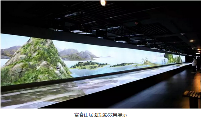 畫幅長39米,隨著早中晚不同時間的變化,畫卷中的富春江沿線風景相應(yīng)變化。同時,還有晴天、下雨等不同天氣的變化。畫卷具備互動效果,游人走動要小心,否則會驚嚇到畫中的小魚,沉浸感十足,令游人仿佛置身媒體的富春江畔,流連忘返,駐足不前。