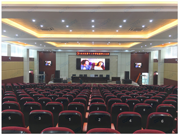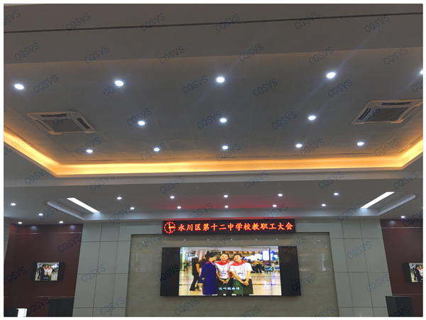 在重慶市永川某中學報告廳項目中,我司主要采用3x5液晶拼接墻和商業顯示器相結合打造其顯示系統,同時運用SVS智能會議系統設備和擴聲音響系統設備,將聲和光結合起來,從聽覺和視覺上帶來強烈的震撼感。經過改造后的報告廳功能更加多樣,既可以用于學術報告,教職工代表大會,也可用于期末家長會等,全程智能化的遙控操作深受教職工的歡迎。