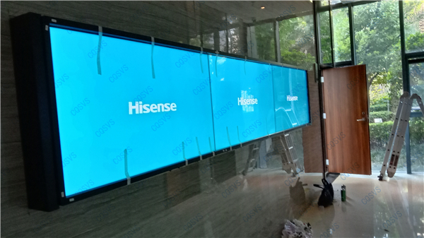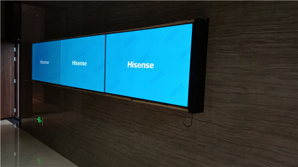 重慶迅控電子科技有限公司作為專業音視頻系統集成方案提供商,在創意顯示方面積極創新,形成了自己獨特的設計方案。此次為重慶市某大數據產業基地打造形象墻項目,采用3臺55寸海信液晶拼接屏通過豎拼1X3的方式,外加紅外觸摸框進行實施。