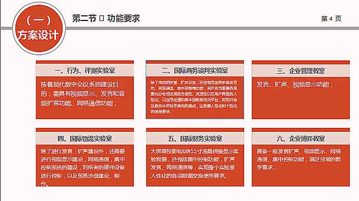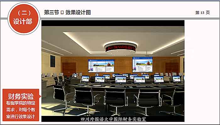 本次我公司為四川外語學(xué)院國際商學(xué)院的創(chuàng)新多媒體教學(xué)實(shí)驗(yàn)室做針對性設(shè)計(jì)和實(shí)施;建設(shè)目的:通過多媒體和教學(xué)互動、虛擬實(shí)際工作教學(xué)環(huán)境實(shí)現(xiàn)模擬工作教學(xué);設(shè)計(jì)思想:通過多媒體、聲光電、交互式教學(xué)實(shí)現(xiàn)創(chuàng)新實(shí)驗(yàn)室的建設(shè);