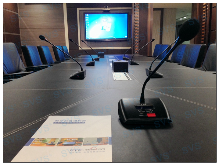 此次迅控為成都某地產公司打造高級數字會議室,因為現場是已經裝修完畢,為了不影響客戶的裝修環境,迅控為客戶提供了新款無線會議系統,高品質的發言效果,方便的安裝使用方式,得到了客戶的高度好評。SV-WM800B無線會議系統(詳情請點擊)系統采用FM調頻實現聲音信號傳輸,高保真,信噪比高,無聲音延時。使用獨有的新型防嘯叫單指向高靈敏度電容咪芯,使會議聲音幾近完美。音頻信道和控制信道皆采用無線方式傳送,無需鋪設電纜,信號覆蓋范園內可任意移動,使會場布置便捷靈活。具有輪替1-2-3-4、限制1-2-3-4、主席專有多種會議發言模式,主控機可外接視像主機,實現會場列席單元的視像跟蹤功能。大屏幕LCD顯示。分級菜單設計,使操作簡明方便。且有諸多如電量顯示和欠壓警告,頻率信道和信號指示等功能。主控采用全金屬結構設計,莊重大方;列席單元采用工程塑料材質加上新穎的外型設計,內置天線,美觀得體。