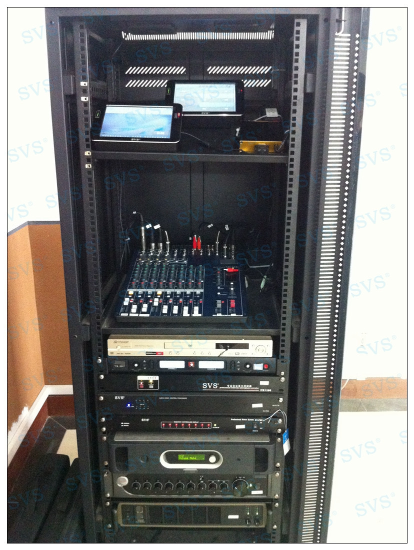此次迅控SVS為北京市海淀區(qū)某校打造數(shù)字會議室,會場采用雙觸摸屏控制系統(tǒng),會場用戶及控制室管理人員都可以同時在不同地點實現(xiàn)對會場的智能化控制,包括投影機開關(guān)及信號管理、音量大小控制、會場環(huán)境控制等,靈活的控制方式、控制系統(tǒng)強大的兼容性和穩(wěn)定性得到用戶的高度評價。
