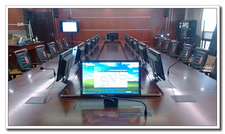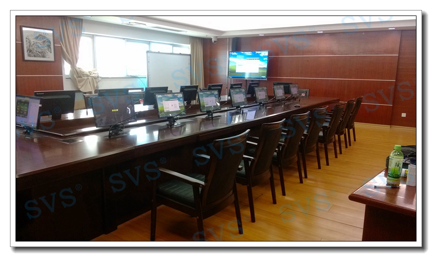 此次SVS為北海市某區(qū)人民法院打造一個(gè)無紙化會(huì)議室,采用無紙化會(huì)議室標(biāo)準(zhǔn)配置,19寸桌面顯示器隱藏器、嵌入式純數(shù)字帶表決會(huì)討單元、嵌入式桌面信息盒,三者的完美結(jié)合,打造出完整的無紙化會(huì)議信息平臺(tái),從輸出到輸入都實(shí)現(xiàn)智能化、無紙化的優(yōu)勢(shì),最后通過中央控制系統(tǒng),集合整個(gè)會(huì)場(chǎng)的多媒體產(chǎn)品,實(shí)現(xiàn)統(tǒng)一數(shù)字化管理。