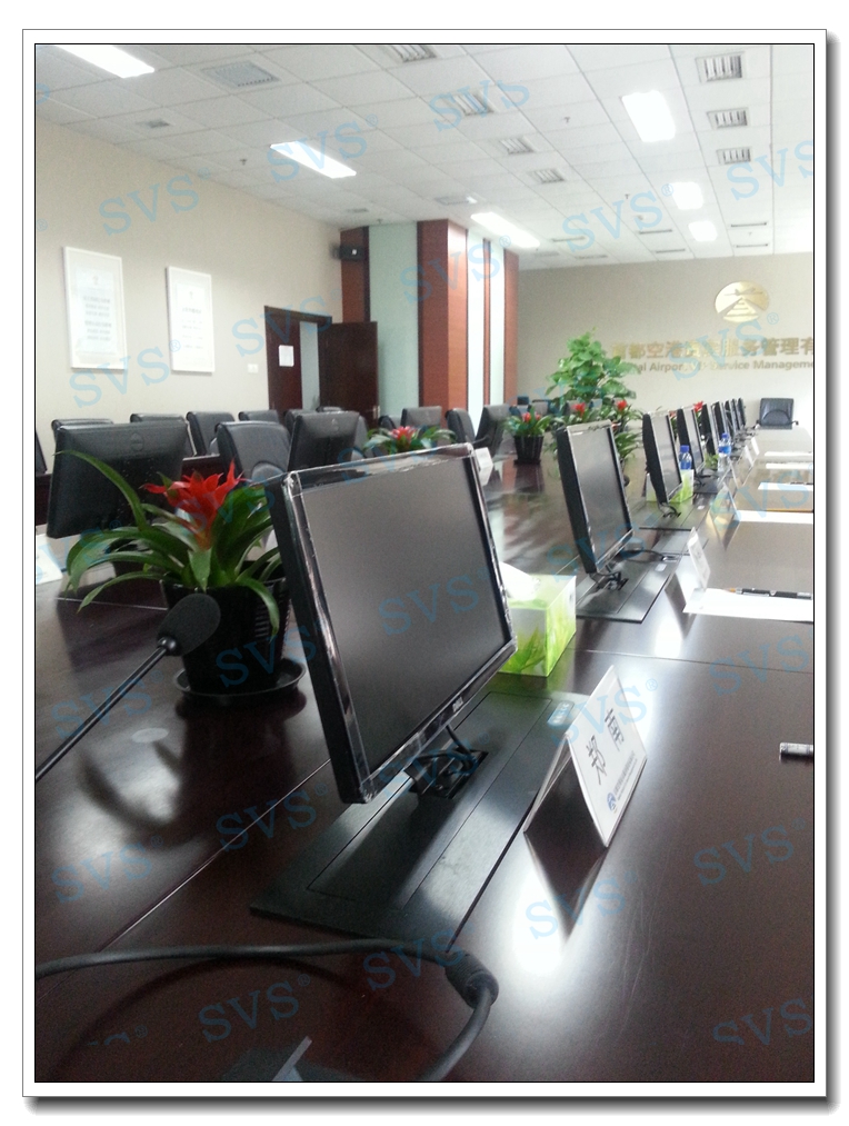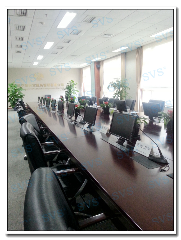 首都空港貴賓服務管理有限公司(首都機場集團公司要客部)是首都機場集團公司全資企業,是為黨和國家領導人、重要國賓抵離首都國際機場提供接待服務的專業機構,擁有40余年政府專機、要客進出港服務經驗和400余名專業服務人員。歷屆黨和國家領導人以及來華各國元首、高層政府官員均接受過公司提供的服務。此次SVS為其打造數字會議室,會場使用桌面隱藏式液晶顯示單元,配合信號管理系統,實現多媒體會議與普通會議的多會議模式,并可根據與會人員多少,控制桌面升降顯示數量,輕松掌控無紙化會議新時代。