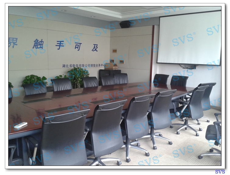 此次SVS為湖北電信增值服務中心數字會議室打造集中控制系統、桌面信息系統、顯示器隱藏系統,通過集中控制系統實現系統開關、投影機開關、投影幕升降、升降器同步及異步升降、信息盒信號智能切換等多種功能,通過平板電腦解碼器,輕松實現平板電腦智能控制。