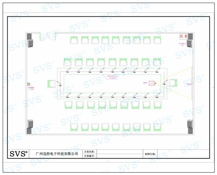 會議配置5.7寸無線觸摸屏作為控制終端,16色真彩顯示,操控界面可任意編排設計使之更美觀、實用。中央控制器AV9000,配合信號切換矩陣,獨立強/弱電源控制器等,實現受控信號與強電分離,減少干擾,實現投影、設備、音量等智能化一鍵式控制,有效保證設備的穩定運行與使用壽命。