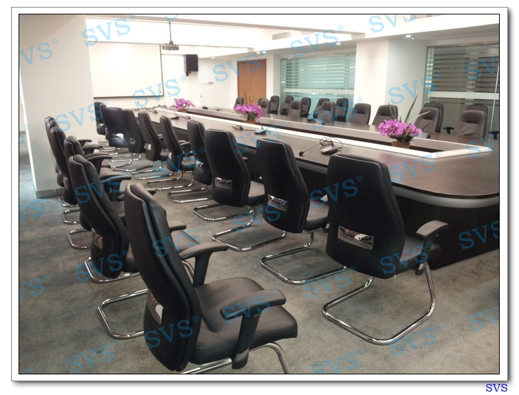 此次SVS為集團(tuán)打造綜合會(huì)議項(xiàng)目,包括一個(gè)會(huì)商室、一個(gè)數(shù)字會(huì)議室、一個(gè)培訓(xùn)室、一個(gè)大型多功能廳,數(shù)字會(huì)議系統(tǒng)及專業(yè)擴(kuò)聲系統(tǒng)全部由SVS設(shè)計(jì)并提供,根據(jù)不同的會(huì)議需要選擇會(huì)議發(fā)言系統(tǒng),會(huì)商室、會(huì)議室及多功能廳分別使用數(shù)字桌面發(fā)言系統(tǒng)與無線發(fā)言系統(tǒng)相結(jié)合的發(fā)言模式,培訓(xùn)室根據(jù)需要?jiǎng)t只為客戶選擇了無線發(fā)言系統(tǒng);另根據(jù)會(huì)場(chǎng)的實(shí)際建筑情況為其選擇最適合的擴(kuò)聲系統(tǒng),打造出專屬聲場(chǎng);專業(yè)的技術(shù)和產(chǎn)品,得到了客戶的高度認(rèn)可。