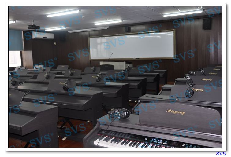 中國共產黨廣州市某區老干部局老干活動中心綜合樓項目二期項目會場明細:項目二期一共有22個電教室,其中包括14間普通電教室,2間鋼琴室,1間樂器室,1間活動室,1間古箏室,1間電腦室,1間舞蹈室,1間合唱室;項目系統詳解:項目二期SVS為客戶打造數字講桌系統,講桌系統包括有線發言、觸摸屏控制、數字展臺展示、智能便攜插口、專業擴聲系統,控制電教室的發言、擴聲、信號切換等功能;