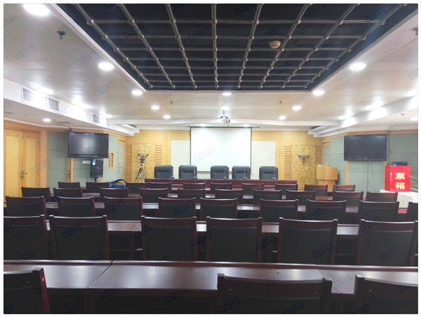 在重慶市某重點稅務管理局會議廳改造項目中,我司通過層層預案篩選,最后決定主要采用顯示系統、會議發言系統和擴聲系統相結合的方法來實現整個會議廳的智能化。在會議廳的正前方的展示主要由投影設備和顯示屏組合來實現,再結合主席臺的會議發言話筒設備和四周的全頻擴聲音箱設備,打造功能多樣、聲光融合的智能化會議中心。