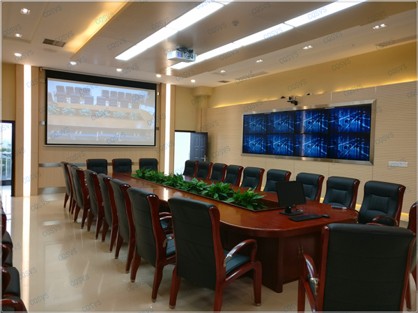 此次我司為重慶某電力分公司搭建應急指揮中心,主要包含會議發言系統、拾音及擴聲系統、大屏顯示系統以及集中控制系統,其中大屏顯示系統主要采用LG 55寸超窄拼縫拼接屏通過2*4拼接的方法來實現,會議發言、擴聲及集中控制系統主要采用SVS智能會議產品。通過各個系統相互協作的模式,實現數據信息、調度信息、各類音視頻信息等的匯集和展示,是電力應急指揮系統的中心和樞紐。