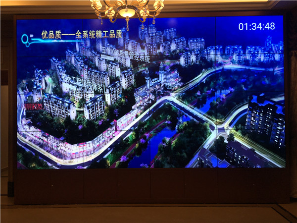 重慶迅控作為創意顯示行業領跑者,過硬的工程質量和良好的業界口碑得到了越來越多用戶的青睞,此前已為龍湖、融創、遠洋等大型地產公司實施創意顯示服務,此次我司很榮幸再次承接某大型地產集團售樓部大屏創意顯示項目。通過設計部考察現場后,綜合考慮到形象展示、功能分區、空間節省等方面,最終確定采用大屏拼接的方式進行實施,通過AVCtrl 55寸3.5mm超窄拼縫拼接屏以4X4拼接的方式,實現大屏展示效果。