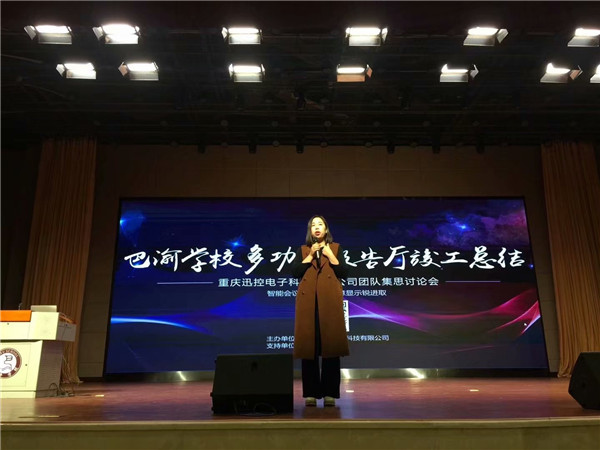 每一個項目的完成都是公司各個部門共同協作的結果,從銷售部到設計部到采購部到最后工程部具體實施項目工程,每位參與人員都始終秉持“用品質服務,讓顧客滿意”的理念,攻堅克難,勤勤懇懇,兢兢業業,旨在為客戶提供最優質的產品和工程服務。本次集思討論會,參與巴渝學校多功能廳建設的各個部門代表依次進行了發言,從自身專業的角度詮釋整個項目從前期設計到最后交付使用的每個環節,同時分享了項目實施過程中存在的困難以及解決辦法,總結經驗,完善不足,以更好的服務于各個學校,助陣“智慧校園”建設。
