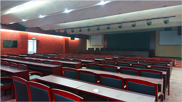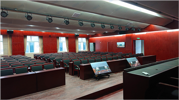 大報告廳:主要采用兩臺投影設(shè)備結(jié)合四臺液晶顯示器組成報告廳顯示系統(tǒng),再結(jié)合發(fā)言單元、音頻擴聲系統(tǒng)以及燈光系統(tǒng),共同打造完美會場。