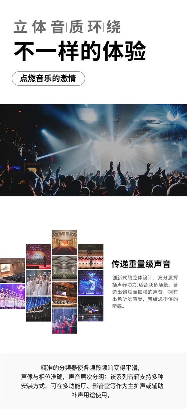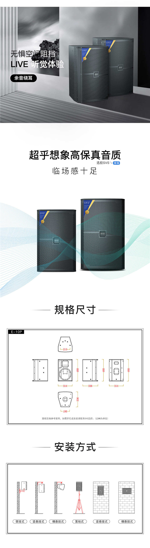 E-15S是一款專業會議&娛樂型音箱,采用高保真喇叭單元,具有大動態、高聲壓的特點。箱體源自國際專業音箱結構師設計,與單元有效共鳴,頻響范圍寬,靈敏度高;精準的分頻器使各頻段頻響變得平滑,聲像與相位準確,聲音層次分明;該系列音箱支持多種安裝方式,可在多功能廳、影音室等作為主擴聲或輔助補聲用途使用。