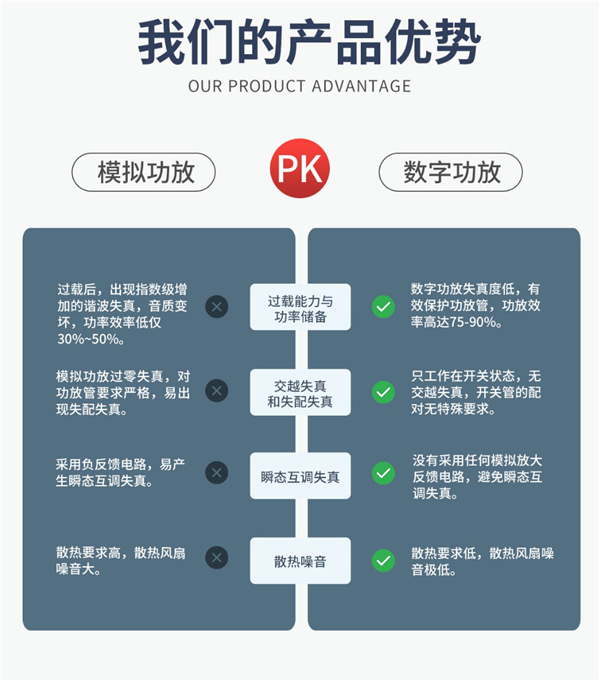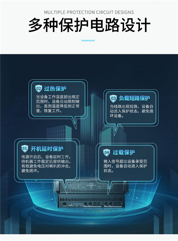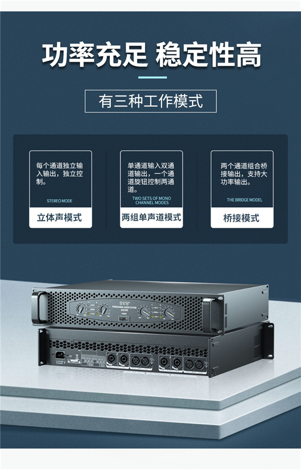 CSD系列功放具有高信噪比、寬電壓、低功耗、高效率等特色,同時具有多重保護:后級燒毀保護、負載短路保護、過壓保護、直流保護、失真壓限保護等;產(chǎn)品主要材料如膽電容、功率放大管、超靜音滾珠風扇等均采用國際大品牌元件; 采用高精度貼片技術,高密度鋁合金散熱,寬電壓大功率開關電源供電,采用PFC穩(wěn)壓,能量充足,低電壓也能正常工作。