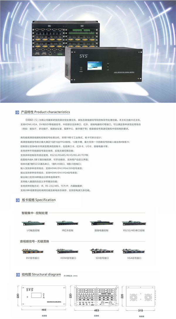 高性能高清音視頻和控制信號處理主機,采用19英寸工業架式,板卡可拆分設計;