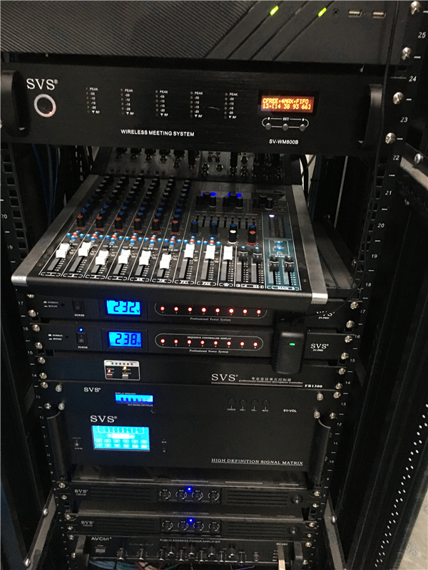 擴聲部分采用8只吸頂音響;發言系統全部采用無線手拉手會議話筒;最后所有系統集成到中央控制系統,對所有設備及信號實現一鍵控制,極大的提高會議效率。