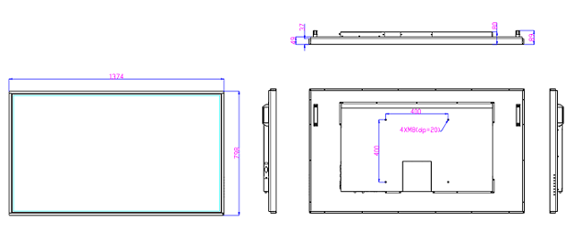 60寸智能會(huì)議平板產(chǎn)品尺寸圖: