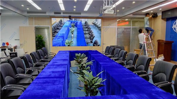 會議顯示使用120寸電動幕布,方便隱藏不影響整體美觀度,一鍵聯動功能讓會議更智能化。